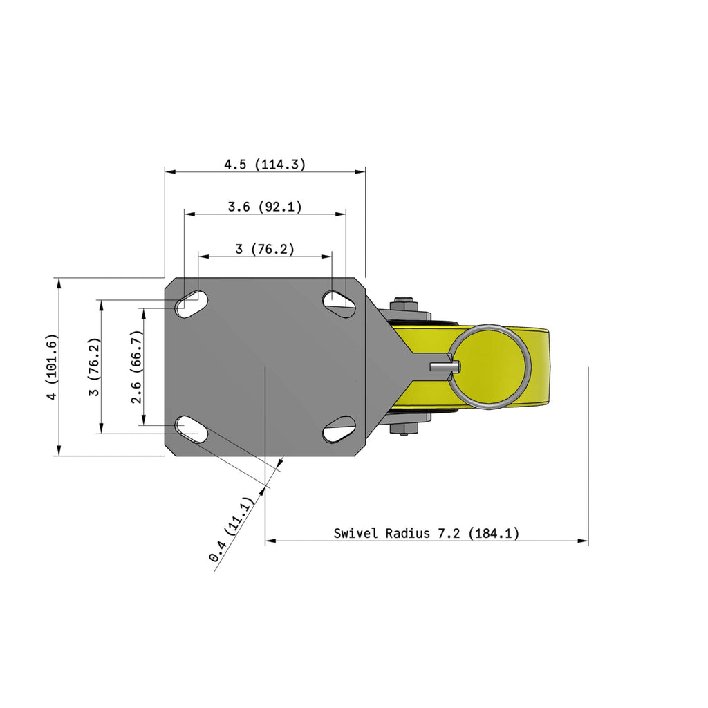 Increases swivel offset (the horizontal distance from the top plate center to the axle) to reduce push/pull forces during alignment and travel, enabling safer, smoother, and quieter operation.